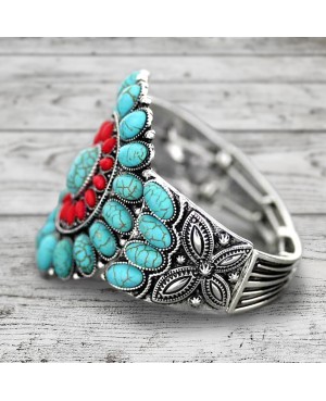 Turquoise and Red Stone Concho Earrings and Matching Bracelet