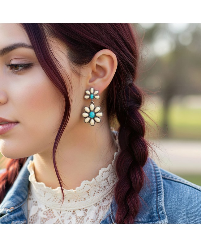 Ivory and Turquoise Stone Concho Earrings and Matching Bracelet Set