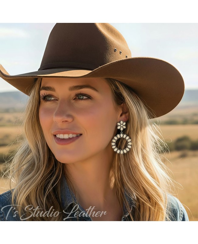 Antique Copper and Ivory Stone Hoop Concho Circle Earrings - Western Style Jewelry