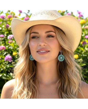 Western Silver Turquoise Feather Dream Catcher Bohemian Earrings