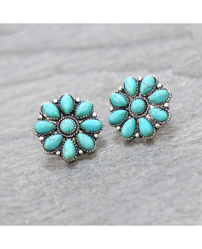 Turquoise and Silver Concho Stud EarringsLightweight Western Style Jewelry