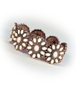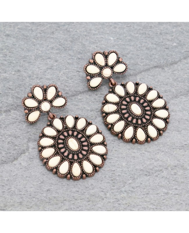 Antique Copper and Ivory Stone Concho Style Earrings - Western Style Jewelry