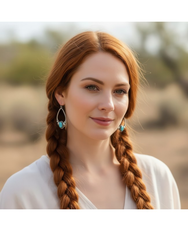 Turquoise and Antique Silver Hoop Earrings - Western Style Cowgirl Boho Chic Jewelry