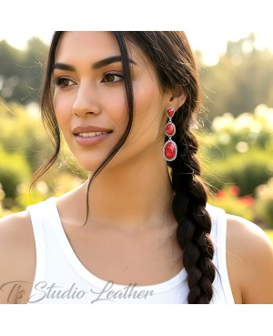 Long Dangling Western Style Turquoise Stone Earrings in Antique Silver Settings, with post style back