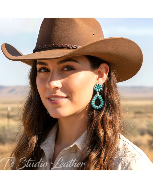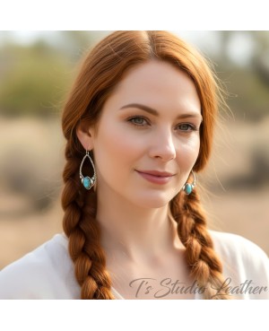 Turquoise and Silver Hoop Concho Drop Earrings - Western Style Jewelry
