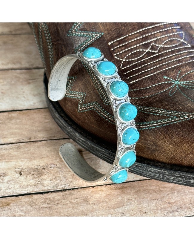 Western Style Cowgirl Turquoise and Antique Silver Hoop Earrings - Rustic Country Wedding Jewelry