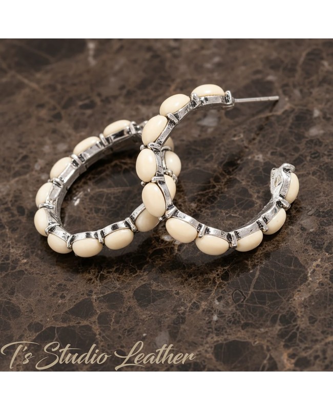 Western Style Cowgirl Turquoise and Antique Silver Hoop Earrings - Rustic Country Wedding Jewelry