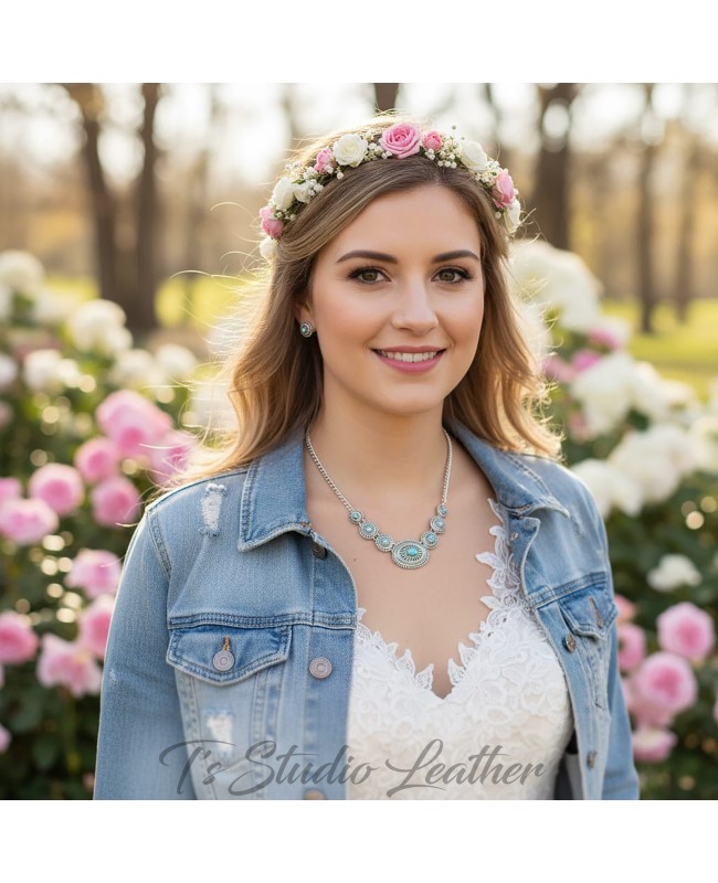 Turquoise and Silver Concho Style Necklace and Earrings Set