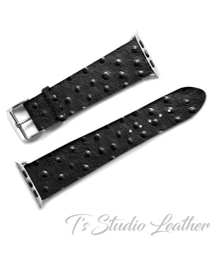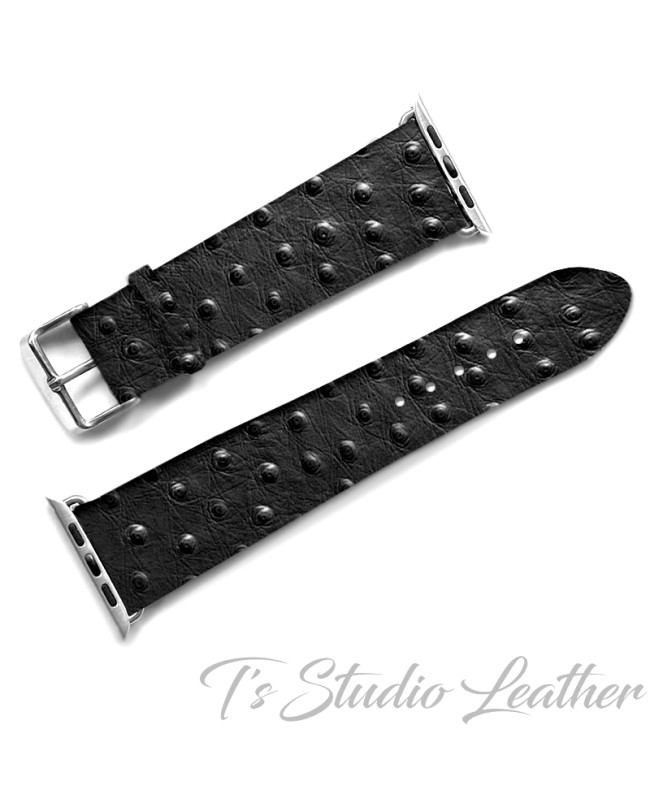 Black Ostrich Texture Leather Wallet Style Phone Case by Ts Studio Leather - Emu Print Embossed Genuine Cowhide Leather Folio Phone Case