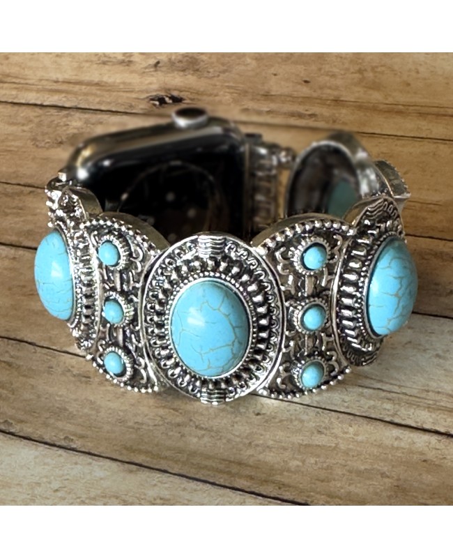 Antique Silver and Turquoise Apple Watch Band Bracelet - Western Style Boho Chic Jewelry