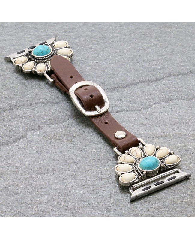 Turquoise and White Stone with Leather Apple Watch Band Bracelet