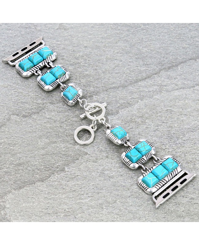 Antique Silver and Turquoise Apple Watch Band Bracelet - Western Style Boho Chic Jewelry